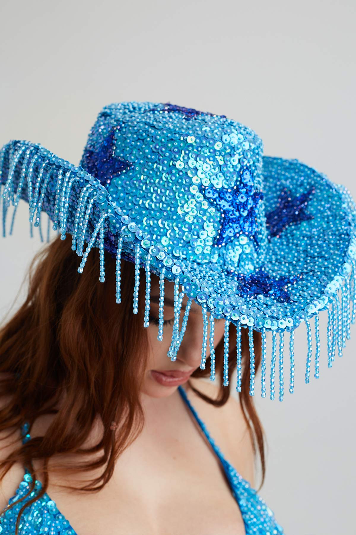 PLEASE NOTE: Please keep hat out of the sun for long periods of time where possible. The sun will fade the sequins and affect the overall look of the garment.